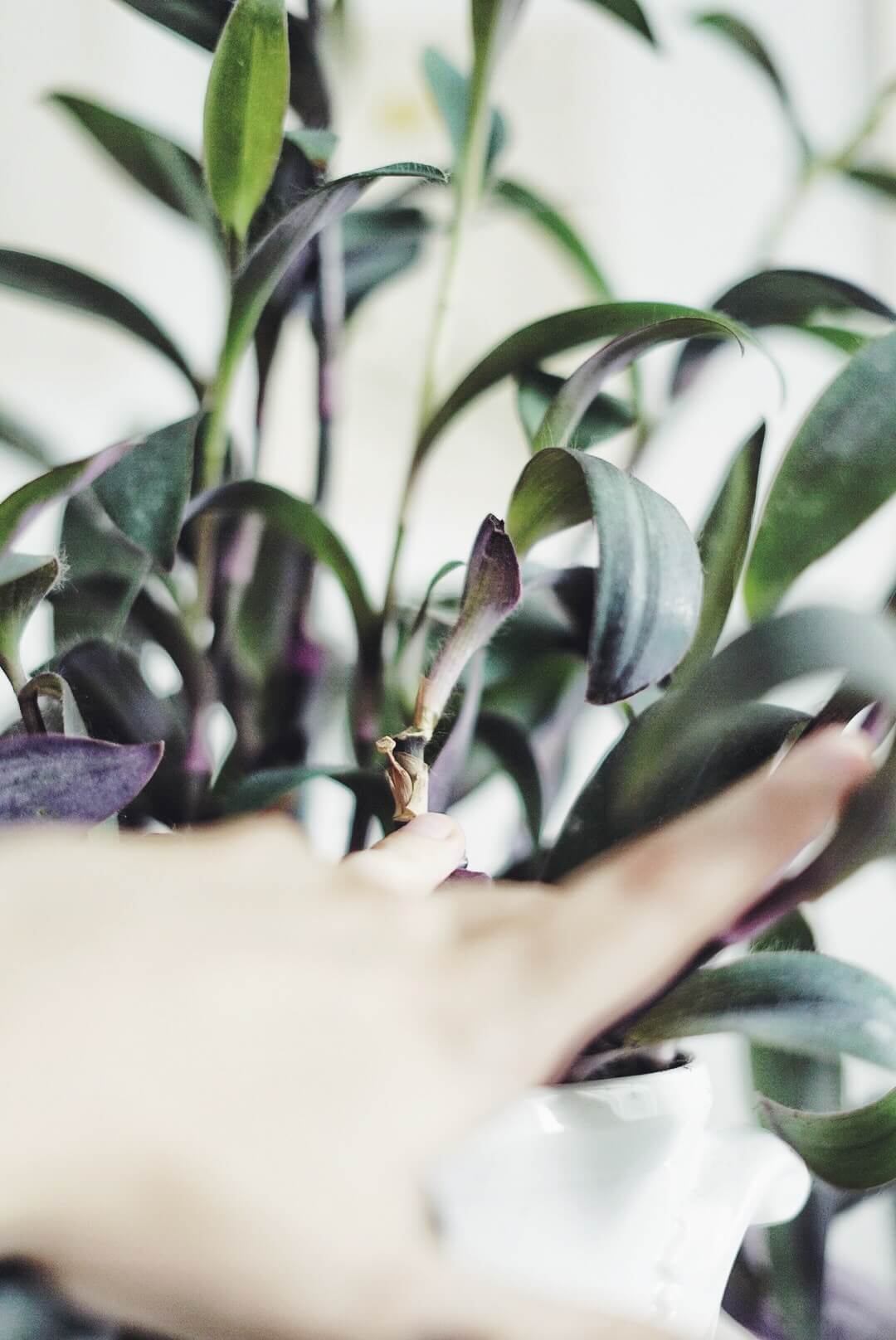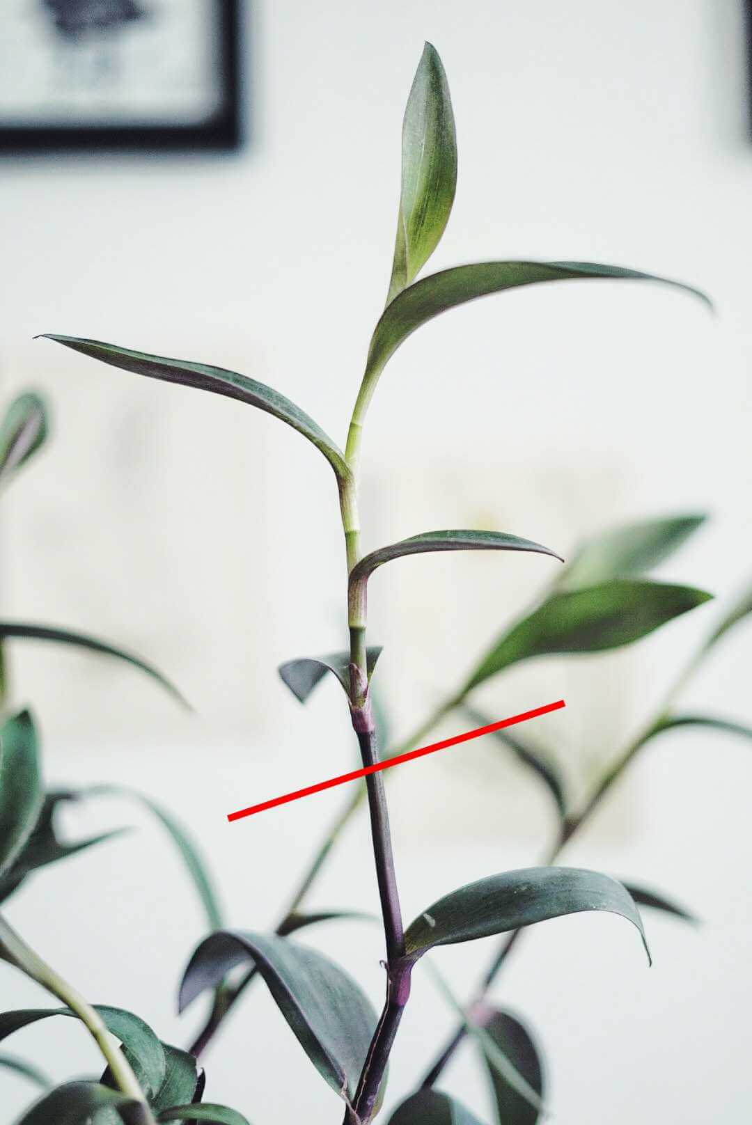 Toppskott: Precis som alla andra växter som växer i rankor tar man sticklingar på ett purpurblad genom toppskott. Börja med att plocka fram hemmets vassaste sax, och identifiera vilken gren som ska falla offer. Klipp sedan ner en 7-8cm stor bit – allra helst ska det finnas tre, fyra bladpar för att det inte ska bli allt för pilligt att hålla på med. Rota sedan sticklingen i vatten eller jord (vatten brukar vara enklast för alla inblandade) och flytta över till en mer permanent kruka när den har fått ordentligt med rötter. Eller tillsammans med moderplantan om man vill ha en buskigare växt!